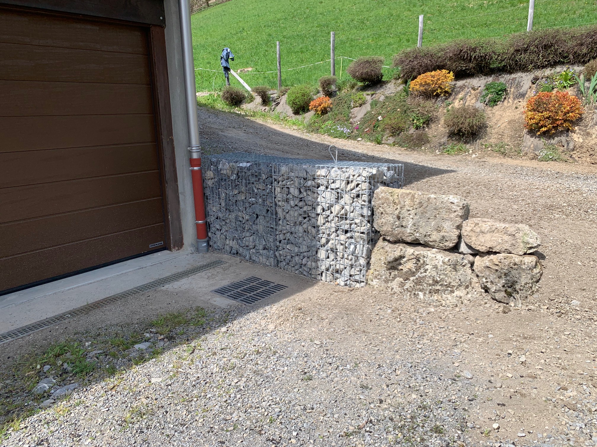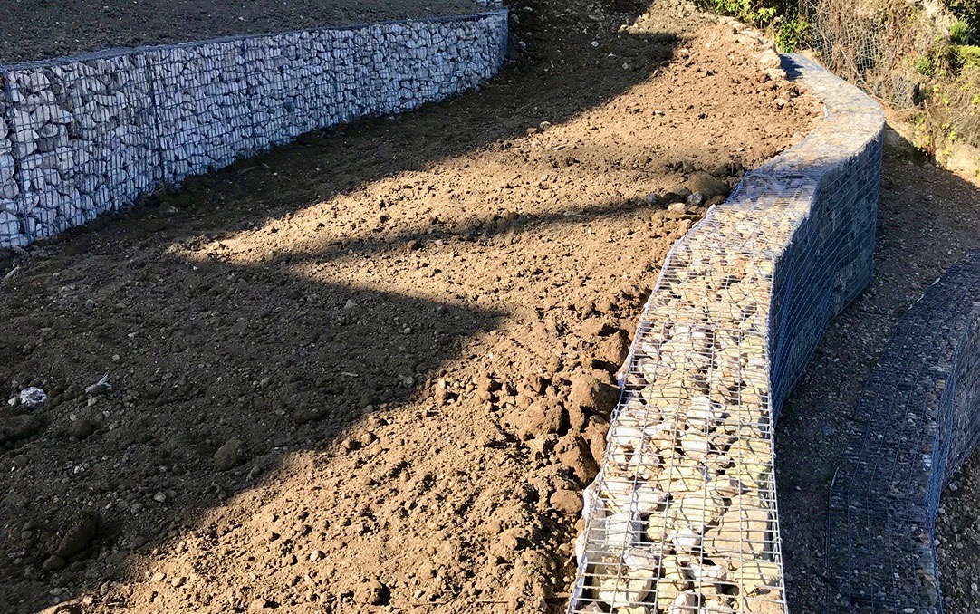 Pose de gabions, poutres paysagères Terrassement / Aménagement Pose de réseaux, tranchées drainantes Enrochements